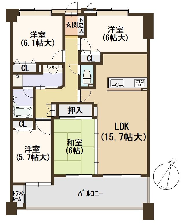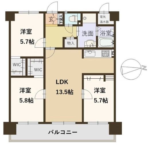 専有面積:壁芯63.23㎡ 3LDK
